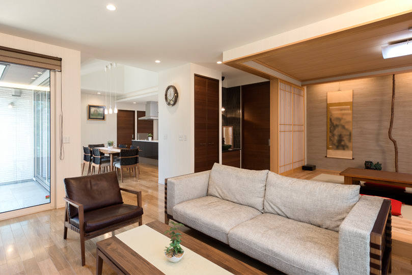 LDKと和室がゆるやかにつながる、気配を感じやすい間取り