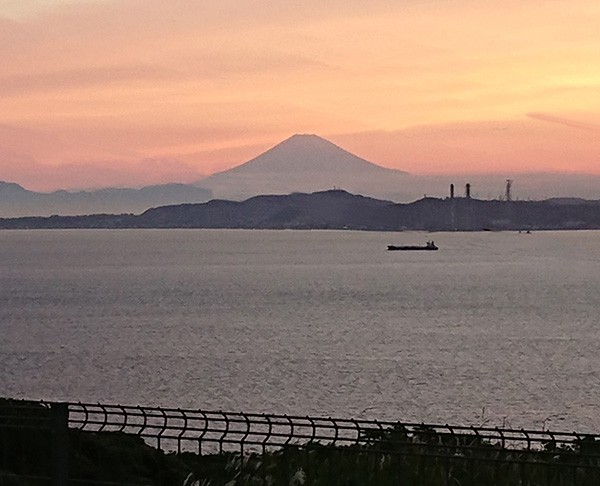 大開口のコーナーサッシから海と富士山を一望
