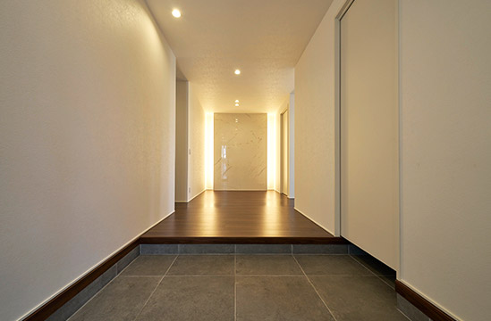 余計(jì)なものを削ぎ落とした、靜謐な玄関ホール