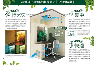 獨自の空間デザインと十分な遮音性能を確保した快適なソロワークブース