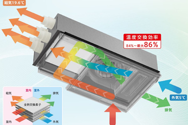 業(yè)界最高水準(zhǔn)の溫度交換効率の第一種熱交換型換気システム