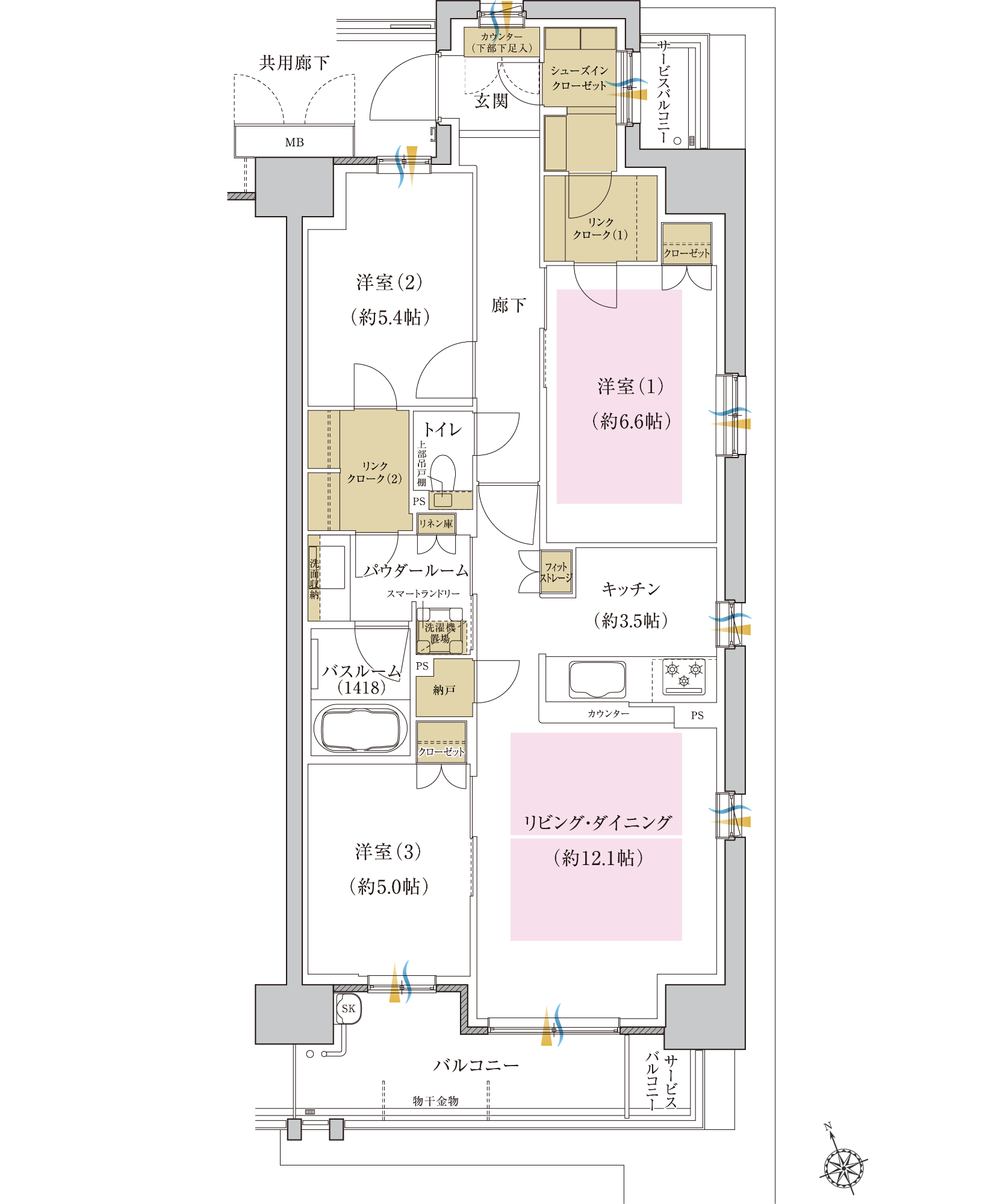 N:納戸サービスバルコニー面積