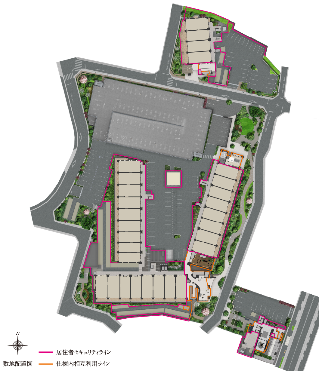 - 「プレミスト藤が丘」では、外部からの不審者の侵入を防ぐためにセキュリティラインを設けています。住戸玄関のロックだけでなく、風除室のオートロックなどによって建物內への無用な侵入を制限し、住まう方の安心に配慮しています。