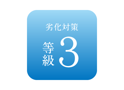 コンクリートの劣化対策には、中性化を遅らせることが重要です。本マンションは住宅性能評価基準に基づき水セメント比を設定し、劣化対策等級3を取得しています。