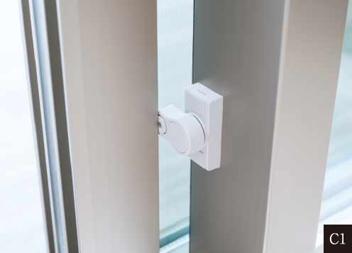 - 玄関ドアには約1000億通りもの理論鍵違い數を有し、ピッキング対策や不正解錠等が困難なキーで、非常に防犯性の高いディンプルキーシリンダー錠を採用しています。