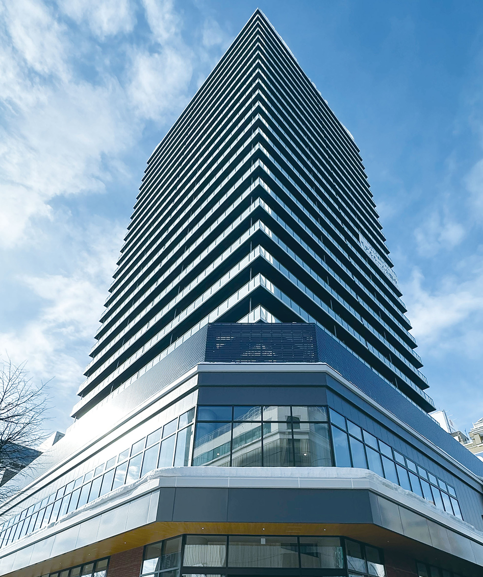 旭川らしさを感じさせる情景から著想を得て、低層部の壁面にはレンガ調(diào)のタイルを採用。