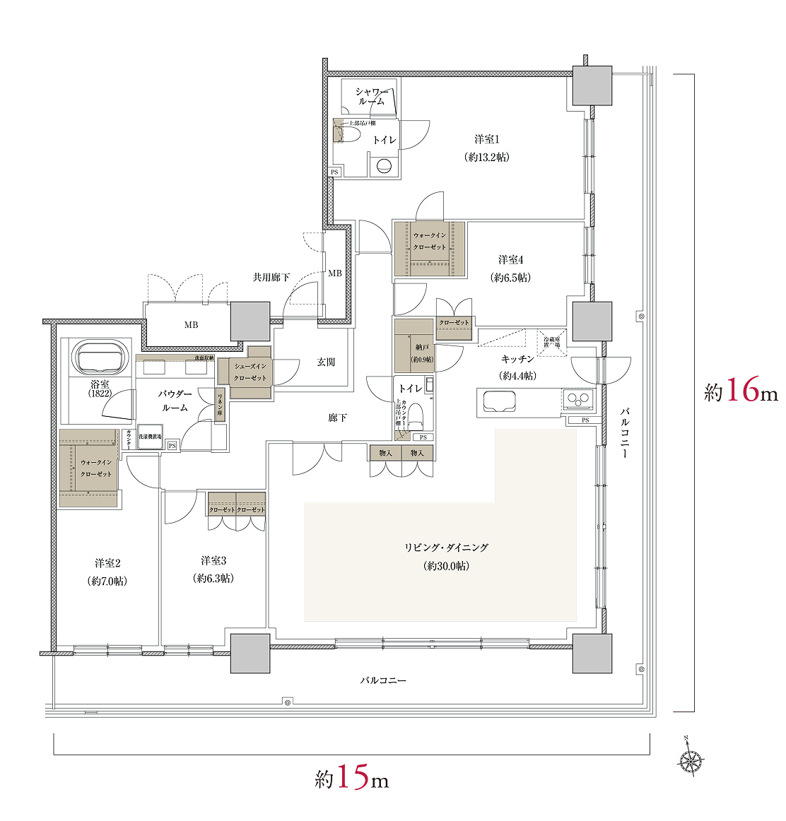 - 南東向きのL型ワイドバルコニー