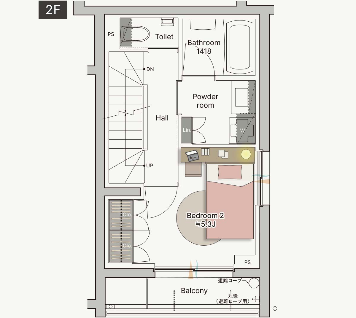 Clo.:クローゼット Lin.:リネン庫R:冷蔵庫置場 W:洗濯機置場 SK:スロップシンクMB:メーターボックス PS:パイプスペース