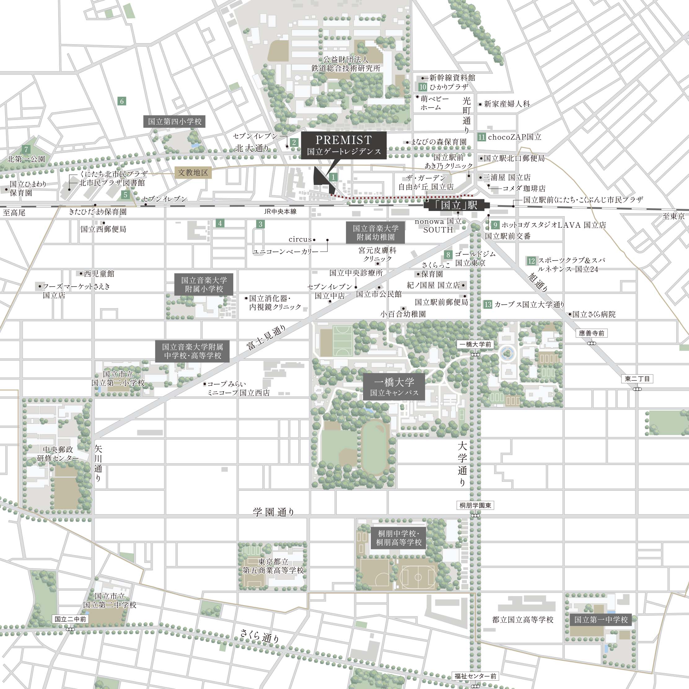 JR中央線「國立」駅北口(徒歩7分?約550m)