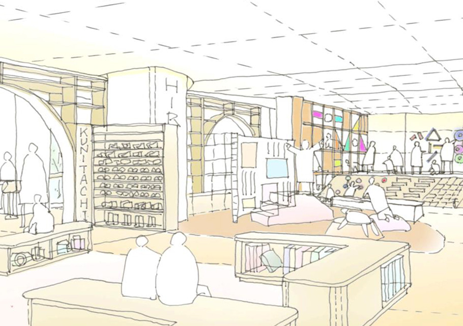 「國立」駅の近くに子どもが遊べる遊具や絵本コーナー、交流が生まれる広場などを設けた新たな子育て支援施設がオープン。子育てしやすいまちづくりを目指した、多世代が自然とつながる交流拠點が誕生しました。
