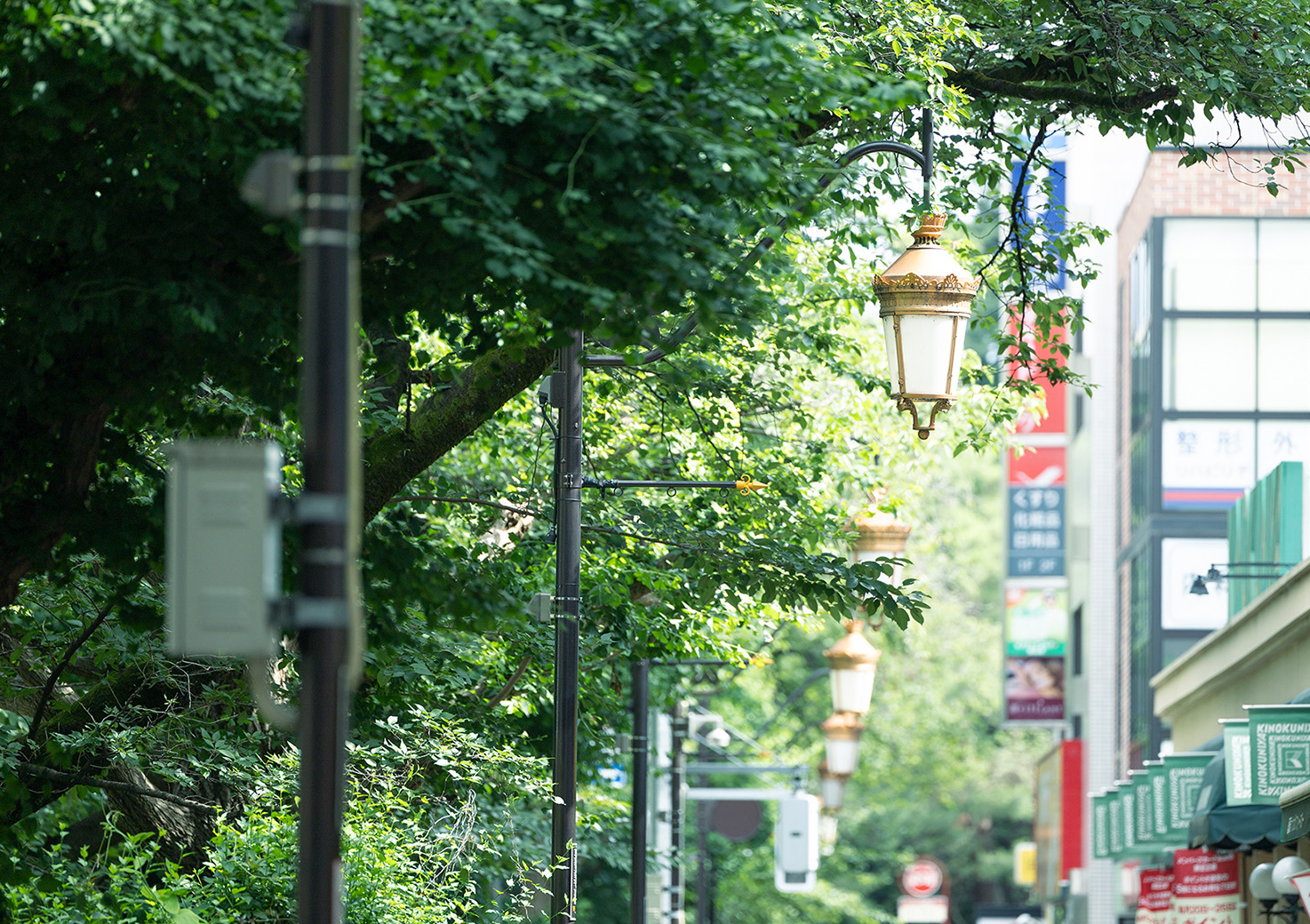 市と住民の協力によってつくりあげられた穏やかな景観が広がる「大學通り」。桜やイチョウによって四季折々に様々な表情を見せる街の美しさは、東京都や選定機関に高く評価されています。