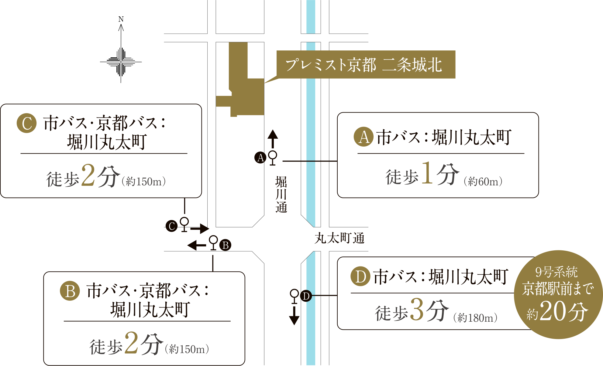 地下鉄東西線 「二條城前」駅徒歩10分 (約760m)