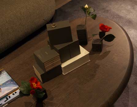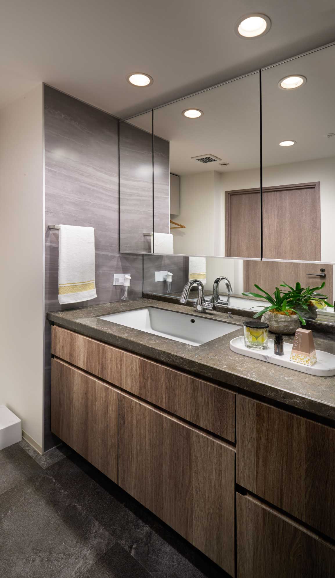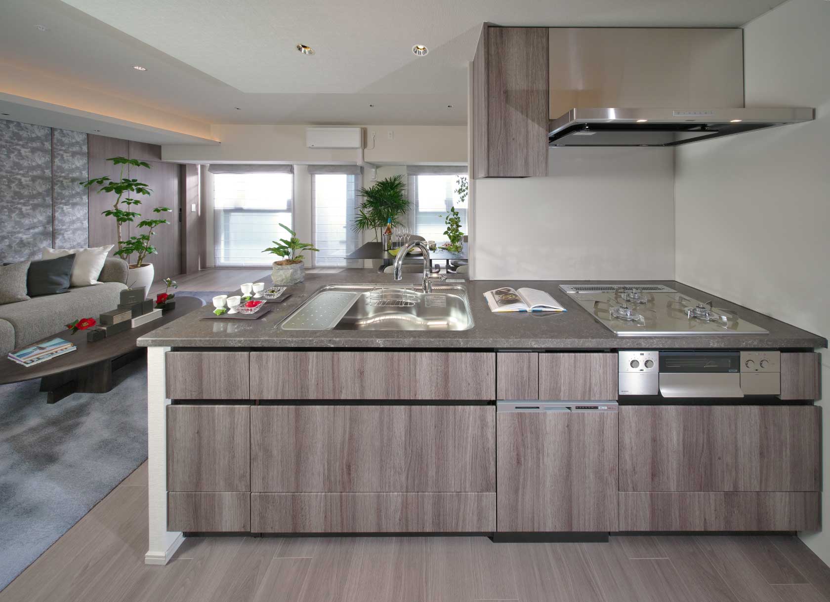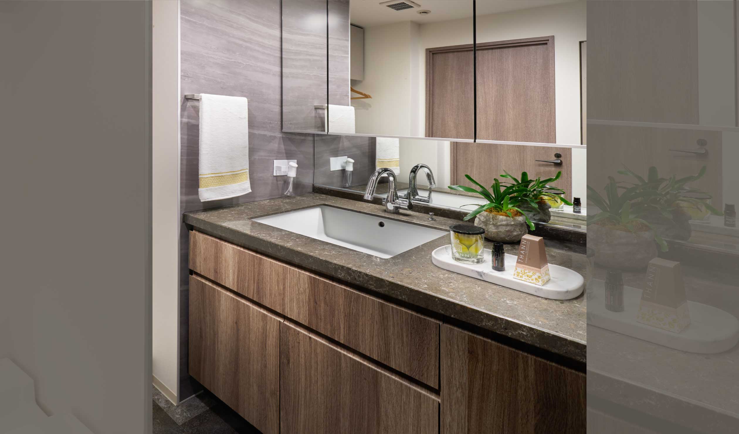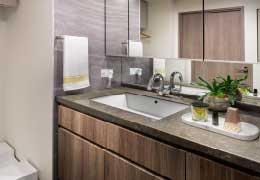 天然水晶を使用した人造石フィオレストーンを採用。天然石の風合いと強度を併せ持ち、洗練された美しさが漂います。