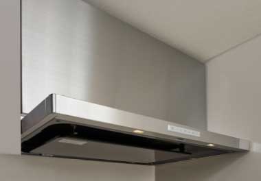 すっきりと美しいデザインのレンジフード。整流板はホーロー製で、お手入れの手軽さを実感できます。