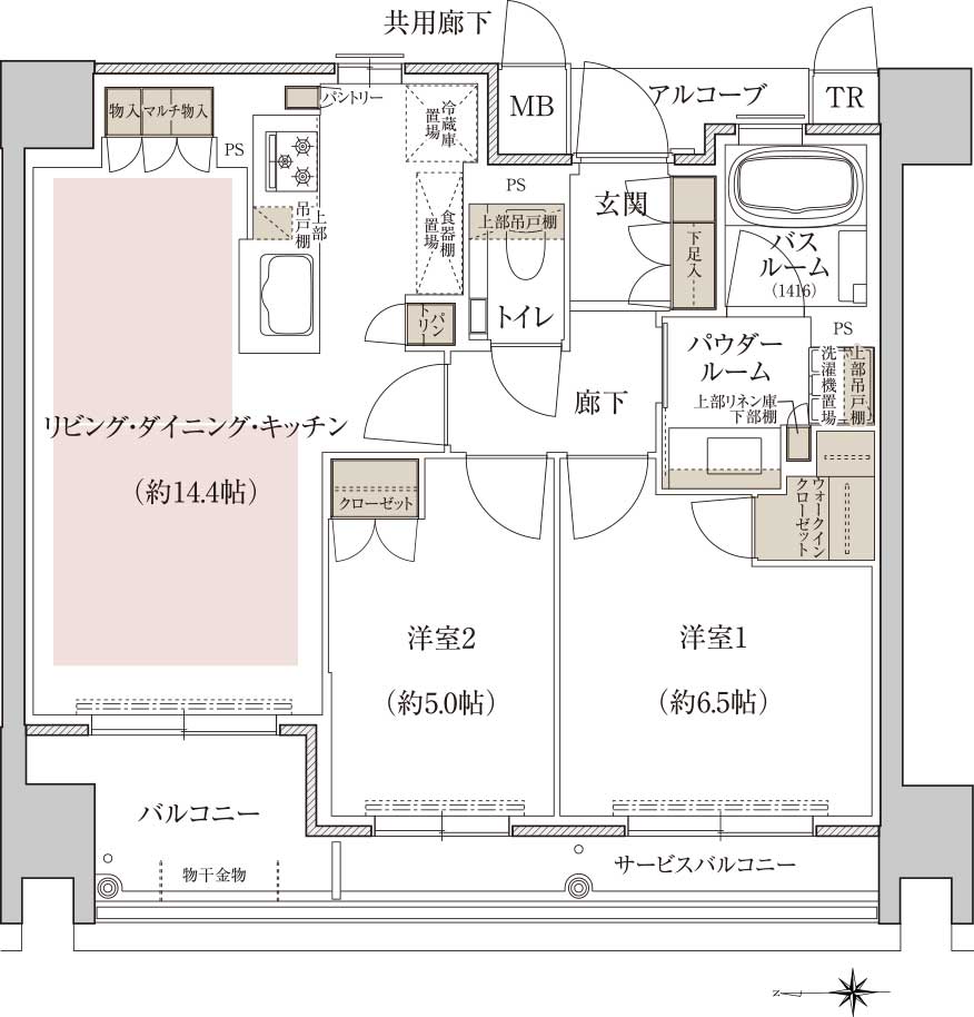 TR=トランクルーム、PS=パイプスペース、