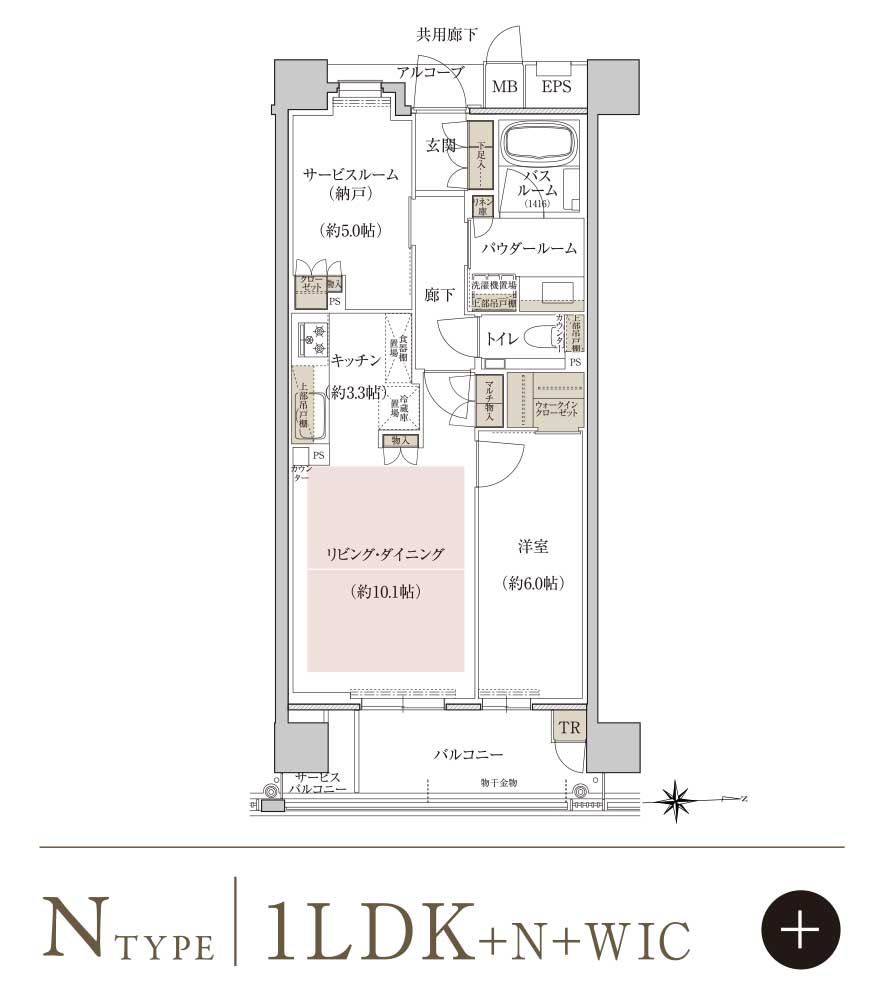 S=サービスルーム(納戸)、WIC=ウォークインクローゼット、