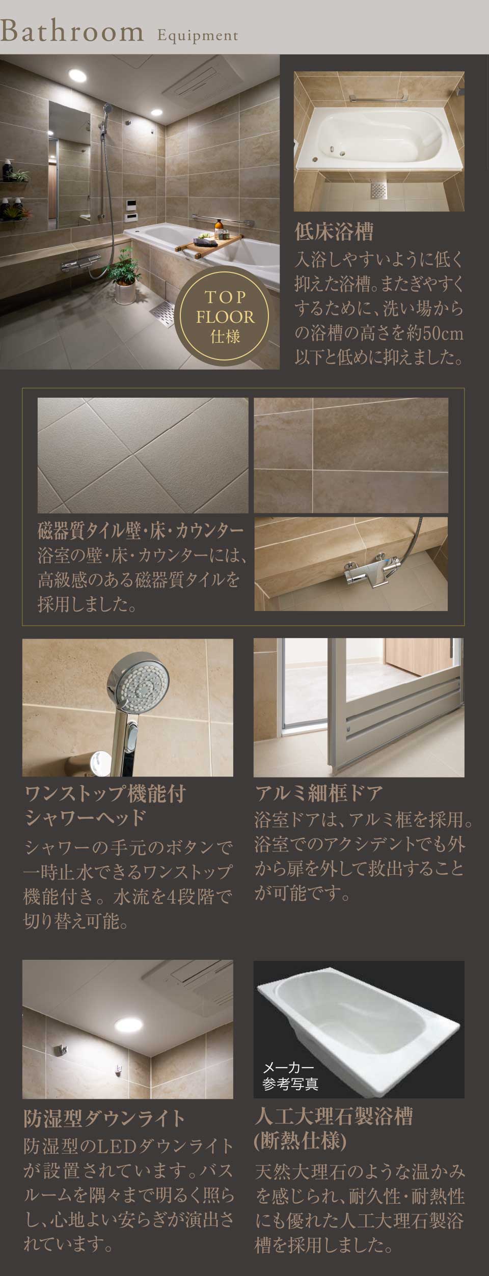 ※浴室の寫真は、すべて參考寫真となります。備品等は価格に含まれません。※その他の寫真は設備コーナーにて撮影(2025年4月)したものです。備品等は価格に含まれません。