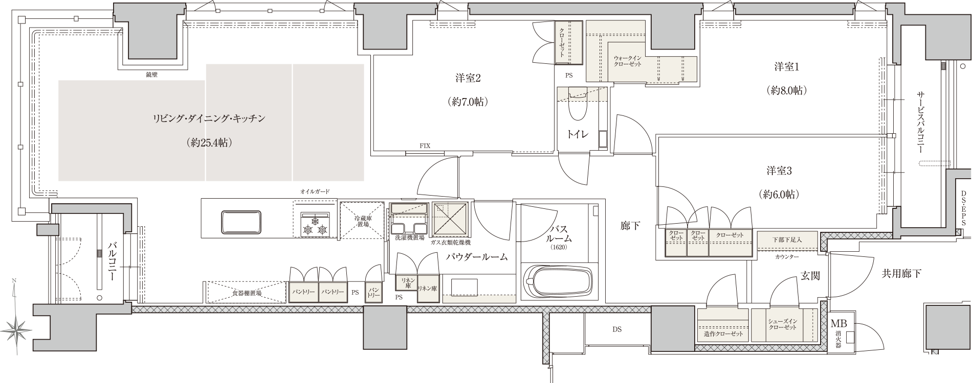 ※Atypeと最上階住戸(J?K?Lタイプ)にはガス衣類乾燥機「乾太くん」が標準で設置されています。