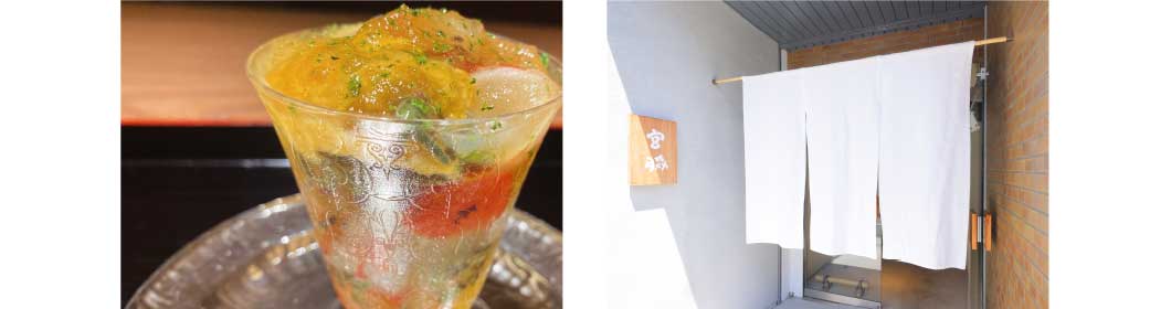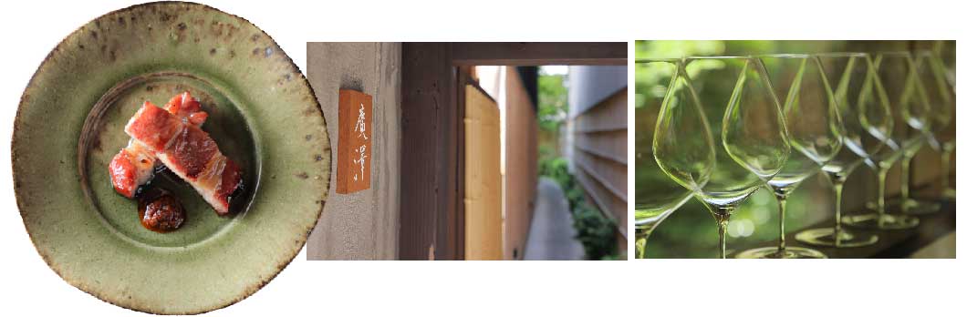 店內(nèi)は設(shè)計(jì)事務(wù)所HIRAMATSUGUMIやハタノワタル氏による特別な內(nèi)裝。料理に添えられる器やグラスには貴重な骨董品などが使われ、季節(jié)ごとにお料理と共に器も表情を変える。季節(jié)の食材を丁寧に仕立てる京料理を提供している。