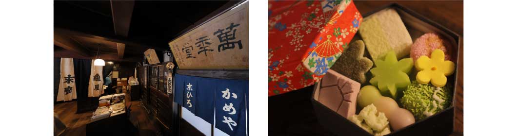 文化元年(1804年)創(chuàng)業(yè)以來、伝統(tǒng)の味と技を守り続けている。看板商品「京のよすが」は、季節(jié)ごとの干菓子や求肥を詰め合わせた逸品で京都の行事や四季を表現(xiàn)している。特別な贈り物としても自分へのご褒美としても最適。