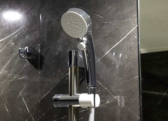 ウェーブ水流と、スプレーシャワーの2つの水流で快適な刺激のある浴び心地。節水しながら快適なシャワータイムを実現します。