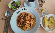 橋本駅からほど近く、もっちり食感の生パスタとミニパフェがセットになったランチが人気のイタリアン。パスタは自家製生麺を使用し、トマト、クリーム、オイル系など豊富なラインナップが魅力。パフェやスープ、ドリンクがセットになった「ベツバラセット」は見た目にもかわいらしく、特に女性人気が高いメニュー。おしゃれでカジュアルな雰囲気の店內は、友人同士はもちろん家族との食事などさまざまなシーンで利用することができます。