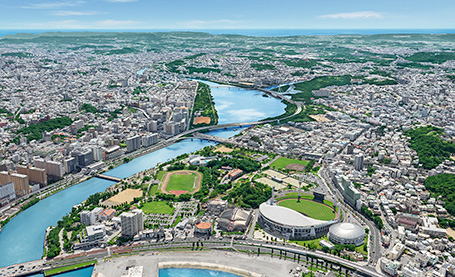 奧武山公園?奧武山総合運動場は、1959(昭和34)年6月に開設された沖縄県內初の(奧武山公園?奧武山総合運動場公式サイトより)運動公園です。モノレール「奧武山公園」駅と「壷川」駅に隣接し、那覇空港からも車で約5分と、交通に便利な場所に位置しています?!袱い?、くらしの中にスポーツを!」と銘打ち、3萬人収容可能な野球場「沖縄セルラースタジアム那覇」をはじめ、武道館、弓道場、プール(25m、50m、飛込み)、テニスコート、多目的広場等、設備も充実。多くの県民が気軽に過ごせる総合運動公園として親しまれています。