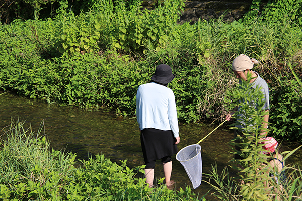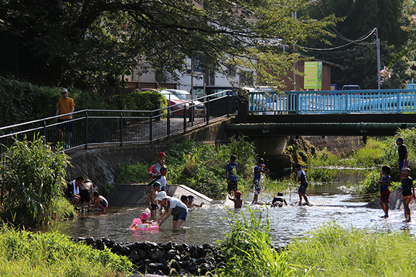 落合川上流は水が澄んでいて、のどかな景色が広がる。
