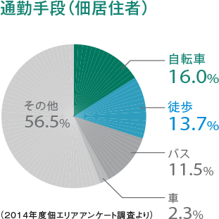 アンケート結(jié)果からは、自転車や徒歩での通勤に加え、バス通勤が多いことも佃の特徴であることが分かる。