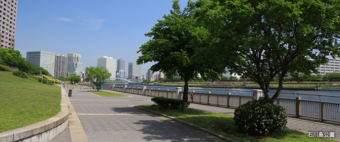 お気に入りは、隅田川沿いに整備された散歩コース。