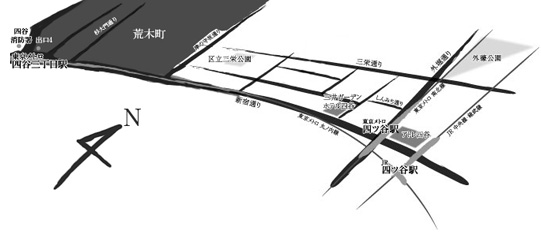 JR「四ツ谷」駅から新宿通りを新宿方面へ