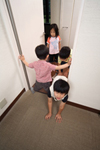 (3)『子どもと階段手すりの使用実態』 住宅の中で最も危険な空間である階段。その階段の手すりの位置・使用実態を調査研究し、子どもと大人の双方にとって使いやすく、且つ、安全な手すりのレイアウトを研究しました。 |