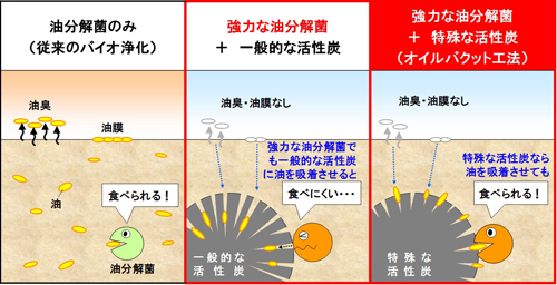 日本初 活性炭とバイオ(油分解菌)を組み合わせた