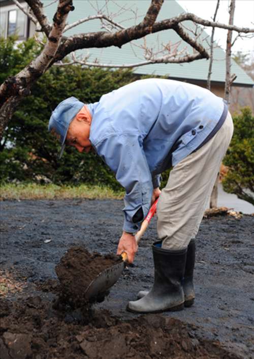 何年もかけて作られた自慢の畑の土をおこして
