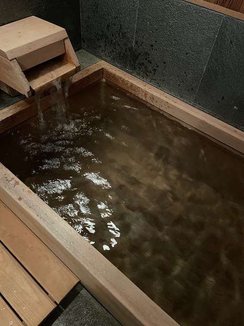 檜のお風呂は広々としていて、ゆったりと楽しむことができました