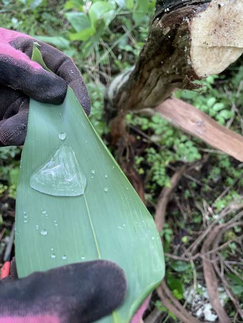 笹の葉をコップにして飲んでみましたが、無味無臭でした
