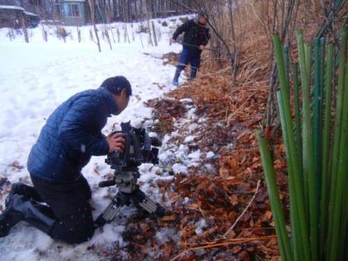「あれ、雪で脫輪でも???」と思い、近寄ってゆくとTV番組の撮影をされていました。