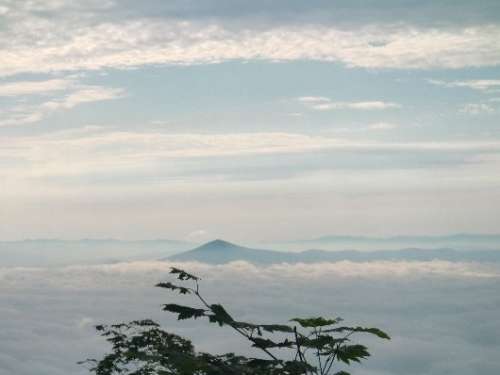 高度を増すにつれ、眺望が広がっていく。円錐型の姫神山がぽっこりと雲の上に頭を出している、まるで、雲の海に浮かぶ島のようだ。