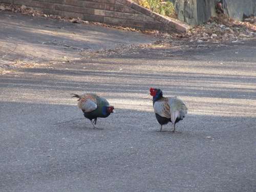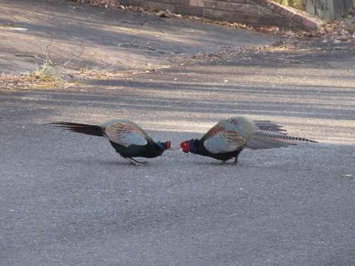 先日、Ⅲ期分譲地內のオオルリの丘を散策していると、綺麗な色合いをしたキジ2匹を見かけました