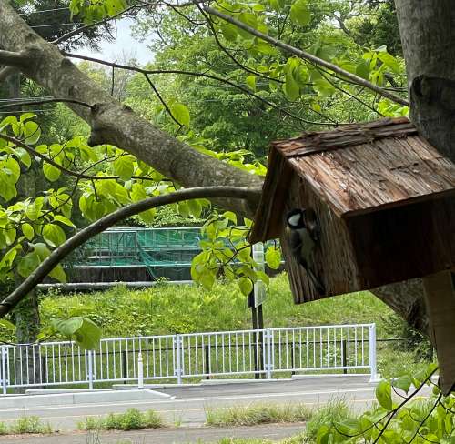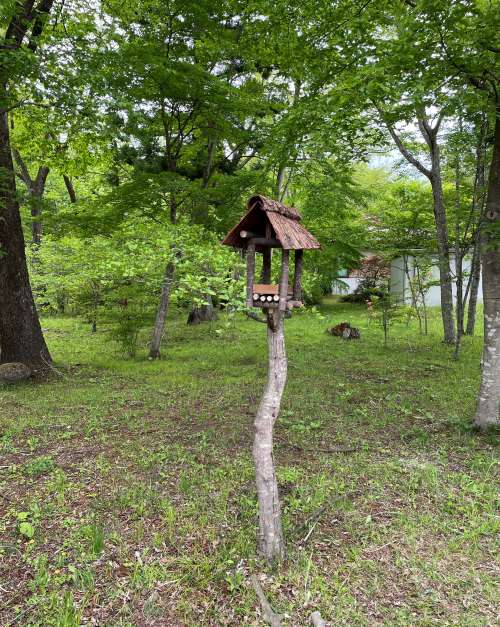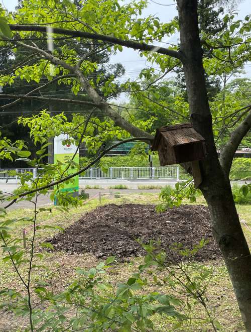 オーナー様のY様に作っていただいた巣箱をサロン橫の緑地ファームに