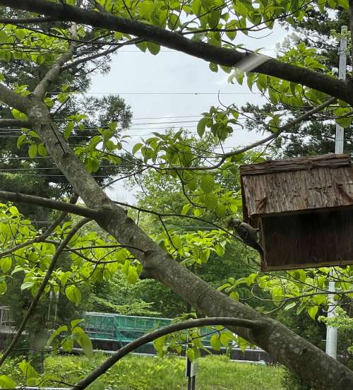 巣箱と一緒に作っていただいた餌箱も設置しました