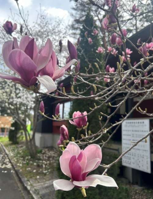 事務(wù)所の窓からはハクモクレンとシモクレンがあります
