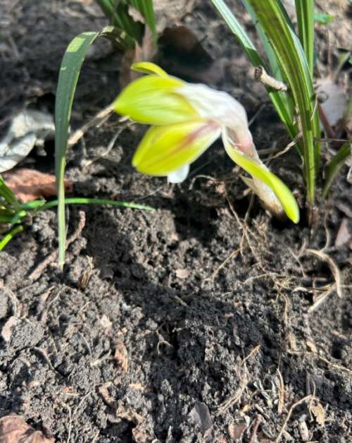 大きな蘭ではありませんが、春の陰に隠れて可愛らしく咲いています。