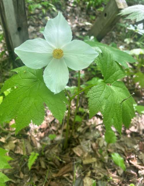 シラネアオイの白です。白のシラネアオイはとても珍しいそうです