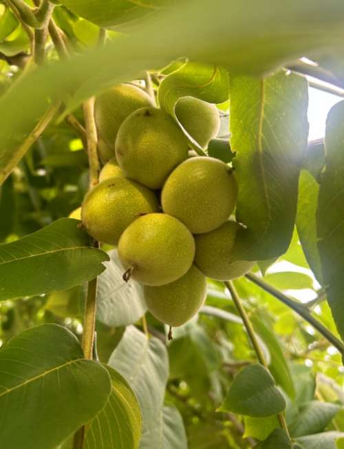 このまるまるとした実の外皮が割れ始めるとクルミの収穫
