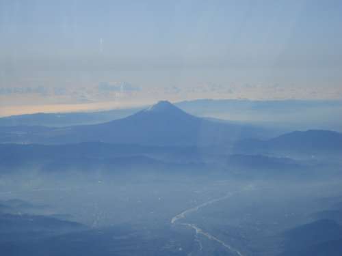 ~ 頭を雲の上に出し 四方の山を見下ろして...... 明治43年文部省唱歌 「ふじの山」 ~ どこの地方にも、ふるさとの「おらが山」があり、日本一の山だと自信をもっていることと思います。しかし、さすがにこの山にはかないません。昨年、伊勢神宮と熊野三大社のお參りに出かけた際に、名古屋まで飛行機を利用したのですが、機內から眺めた富士山がこちらです。新幹線から見える富士山も素晴らしいですが、上空からの眺めも絶品です。上から見下ろすことに関しては、バチあたりな気もいたしますが。ただただ神々しくもありがたく、ただただ美しいとしか言えないものが、この世に一つだけあります。それが「富士山」です。日本人のみならず、世界の人々をも魅了する、日本の誇りでもあります。