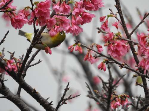 この寫真の撮られた場所は、宮城蔵王リゾートではありません。 これは、沖縄の久米島で撮ったものです。仙臺市が、プロ野球東北楽天ゴールデンイーグルスの本拠地となっているのはご存知のことと思います。おらがチームを応援しようと、イーグルスのキャンプ地である沖縄県久米島に、我が夫とともに旅行したときのものです。季節は2月。選手たちの練習風景を見に行く合間を縫って、島內観光をした際によく見かけた、リュウキュウメジロとカンヒザクラの2ショットです。小さな島中至るところでこのサクラが咲き亂れ、蜜を吸いにやってきたメジロが、これでもかというくらいたくさん見られました。今年のキャンプは、各球団ともお客さんは入れないそうで、殘念なことです。 全く脈絡のない寫真についてのおしゃべりに、最後までお付き合いいただきまして、ありがとうございました。過去に撮った寫真を見返して當時に思いを馳せるのも、なかなか楽しく感じられ、小さな旅をしているような気分になりました。