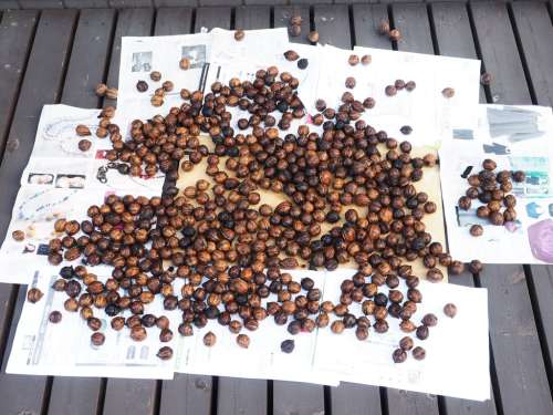 この頃の散歩は“くるみ拾い”に続いて、“クリ拾い”。カラスやリスとの戦い