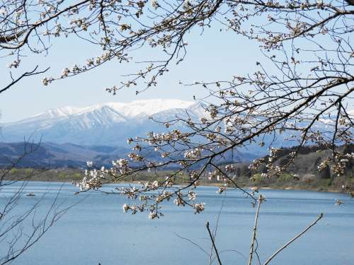 同じ釜房湖からですが、ちょっと場所を変えて蔵王方向を眺めてみました。釜房湖にかかる橋越しに眺めた蔵王です。同じ山の眺めですが、新鮮な印象です。いずれにせよ蔵王は雪を戴いてますが、冬の厳しさは薄れ山全體が優しさを帯びてきているように感じるのは、眺める人間の方の心持ちの変化のせいなのかもしれません。
