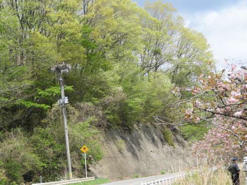 どこが山ほととぎすだ、とお思いでしょう。ほととぎすに限らず、今頃の山にはたくさんの鳥たちが訪れて可愛らしい姿やさえずりで私たちを楽しませてくれています。ただし、警戒心の強い彼らを寫真に収めることは、私にとっては至難の技。そこで、この寫真です。いつも話題にすることでおなじみの釜房湖の道路沿い。何の変哲もない景色に見えますが、左の電柱の上をよく見ると.......